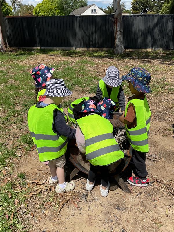 In November, our kindergarten children launched a new composting project as part of our ongoing sustainability program. Guided by their educators, the children ventured into our private natural habitat — a beautiful acre of land surrounding the centre — to learn how food scraps and garden waste can be transformed into nutrient-rich soil that helps our plants thrive.