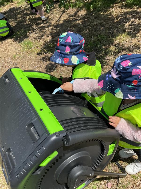 The children loved collecting dried leaves, adding soil, and turning the compost drum — a fun, hands-on experience that nurtures responsibility and care for the environment. They’ll continue visiting the compost each week, watching nature’s recycling process and using the compost to enrich our thriving vegetable garden.